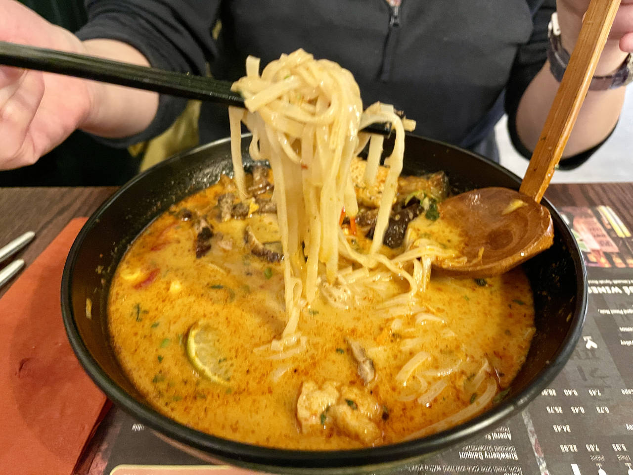 In terms of taste, the Singapore Laksa passed as authentic. However, lime wedges are not strictly Singapore Laksa (usually only found in Sarawak Laksa), the toppings could go further to include prawn slices even half a hard boiled egg. The chicken is usually boiled shredded chicken meat and not barbecued.